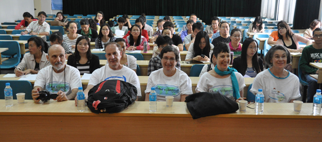 美国“环球志愿者”组织是非政府、非宗教、非盈利性机构。受昆明市人民政府的邀请,自2005年6月起,先后20次组织志愿者到昆明市开展中小学、幼儿园英语教师培训。志愿者培训理念先进、方法新颖、经验丰富、态度热情。该项目在昆明开展7年来,已有1556名英语教师从中受益,对昆明市中小学英语教师队伍建设发挥了较大的作用。