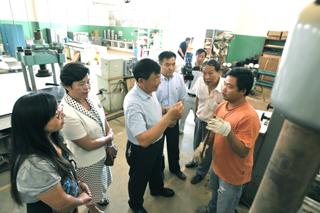 在参观永利官网建筑材料、轨道交通、流体力学、烹饪等实验室中,杨应楠副主任一行边参观边仔细听取梁书记、陈校长就永利官网特色学科专业建设情况介绍。在参观中,省市领导每到一个实验室,都要向实验室教师了解实验室的建设情况,并饶有兴致地听取对设备功能及流程的介绍。
