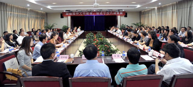 在分组考评完成后,省教育厅和五华区领导分别对永利官网申报“第十三批省级文明单位”进行了推荐,考评组进行了考评情况反馈,并进行了考评总结。