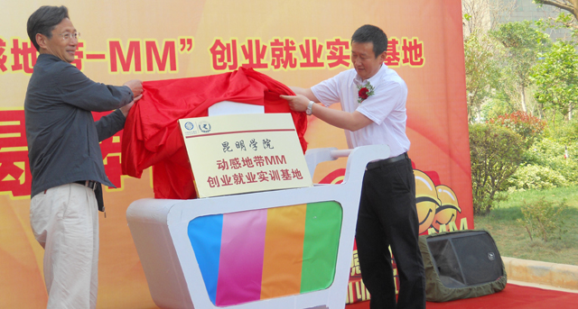随后,刘海发副校长和中国移动通信集团云南有限公司昆明分公司黄蜀云总经理上台为3044am永利官网“动感地带——MM” 创业就业实训基地揭牌,并合影留念。