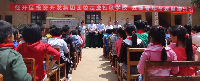 为进一步贯彻落实省第九次党代会精神,深入开展“四群教育”,积极响应省委组织部、团省委、省高校工委关于组织共产党员、共青团员进社区开展志愿为民服务活动的号召,4月27日下午,校团委联合经开区投资开发(集团)有限公司团委到经开区海子中心学校清水分校,开展了“走进社区学校五四青年节送温暖”活动。校团委书记何昊宸、各院系团总支书记代表及永利官网青年志愿者参加了本次活动。