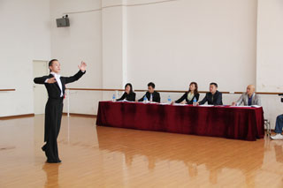 3月16日上午9:00,各工作组各就各位,考场内庄严肃穆,秩序井然。考场大门上方“3044am永利官网2012年体育舞蹈专业考试”的大红布标十分醒目和耀眼,安全保卫人员忠于职守,维持考场秩序。考生按分组名单和顺序,在工作人员的带领下,逐一进入考场,考试工作顺利开始。考场外,参与服务工作的体育学院学生,跨着“3044am永利官网热情欢迎您”的腕带,热情接待每一位候考的考生以及送考的老师和家长。