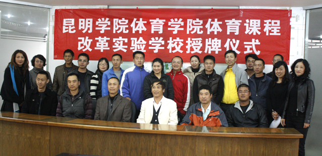 3月2日下午,在昆师路校区行政楼三楼会议室举行了3044am永利官网体育学院体育课程改革实验学校授牌仪式,授牌仪式上体育学院赵平院长与昆明五华、盘龙、西山、官渡四区的16所中小学的领导签署了实验协议,将这16所学校定为我院体育课程改革实验学校。此次活动的开展,是体育教育专业培养模式的改革与创新,不仅拓展了我院的办学思路,也为我院今后的体育教学实验、实习提供了保障。