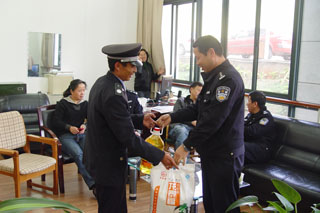 3月9日下午,昌宏派出所教导员陈杰华、片警江爱学和相关人员带上生活所需的米和油看望慰问在保卫处工作且家庭生活困难的校卫队员普开宏,切实为困难群众送上公安机关的一片心意和拳拳爱心,向群众传送党和政府的关爱和温暖。