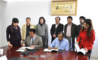 会谈开始时,李翔副校长热情介绍永利官网参会人员并致欢迎词。他在介绍3044am永利官网办学与发展概况的同时,表明了永利官网合作诚意及意向。印度可爱国际大学国际交流处阿吉德博士介绍了印度和本校办学的基本情况,向与会者播放了印度经济、教育发展和可爱国际大学的概况。同时他认真解释说明了可爱国际大学与3044am永利官网签订合作谅解备忘录的主要内容条款。主要涉及教职工互换学习项目、高年级学生第七学期互换实习6个月、“2+2”双子项目(如两国农学、城建专业学生前两年在本国学校学习,后两年交换到对方学校学习,毕业时同时拥有两校毕业证书)、提供新增专业技术支持(如医学院药剂学)、双方创办语言培训中心(教双方教师、学生学习英语、中文)、提供学生家长查询的IT支持系统、建立两校学生短期文化旅行交流活动等。