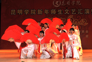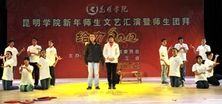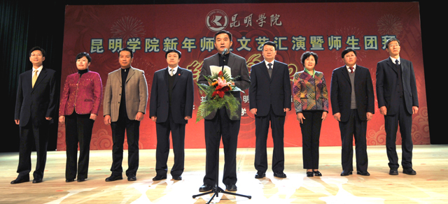 活动上,全体学校领导走上主席台给全校师生拜年。校党委书记梁晓谷代表学校党政领导班子向全校师生员工致新年贺词。梁书记表示:在过去的2011年,学校按照“超常规、跨越式、追赶型”的发展思路,全力、全方位加强内涵建设,教学、科研、管理和服务的水平大幅提升,学校各项事业全面、协调发展,在建设“全国地方同类高校领先、云南省一流、中国知名的高水平、特色浓、区域性、开放型、国际化的教学科研型综合大学”付出了艰苦的努力,在全校师生共同努力下,2011年永利官网学科建设、学生工作、对外交流合作、后勤社会化改革、新校园建设、党建和党风廉政建设等各项工作取得突出成绩。省委第九次党代会为我们描绘了宏伟蓝图;学校“十二五”规划为我们指明了努力的方向。新的一年,学校将继续深入推进内涵建设,不断提高教学、科研整体水平,不断加强和改善管理,不断提高服务质量,继续坚持以服务地方经济社会为己任,立足昆明、研究昆明、服务昆明,主动融入地方经济发展;继续推进党建和党风廉政建设,在全校师生员工和离退休同志的支持下,学校将以崭新的面貌走进2012年。