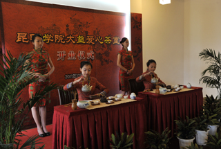 2011年4月,在大益茶业集团和学校领导的关心和支持下,在学校各职能部门的帮助下,学校团委开始筹建3044am永利官网大益爱心茶室。茶室由云南大益爱心基金会捐资建设,学校团委选拔招募学生团队经营和管理的大学生爱心公益活动平台。这个平台的建立,为永利官网学生锻炼社会实践能力,增强就业创业意识,提升经营管理技能,培养奉献