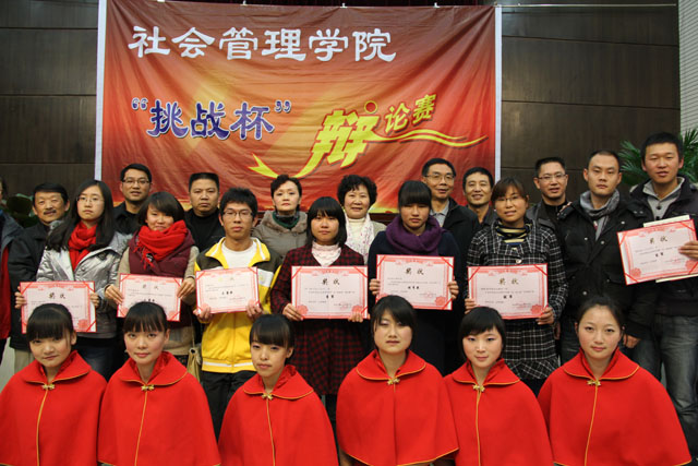 12月8日晚社会管理学院在模拟法庭隆重举办班级学生辩论赛决赛暨本学期团学活动总结颁奖大会。学校党委李媛芬副书记、统战部长张云权、宣传部副部长沈中灿、财务处长陆志平、团委副书记钱海鼎五位老师应邀莅临比赛现场并担任评委。