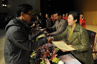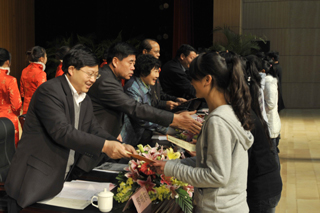 永利官网李翔副校长宣读了《3044am永利官网关于表彰2011年度“红和助学金”获奖学生的决定》。此次学校评出50名同学获得2011年度一等红河助学金,85名同学获得二等红河助学金。参会领导为获奖学生代表颁发了奖状和奖金。随后,受助学生代表孔杉杉发表了感言,表达了广大受助贫困生奋发向上,刻苦学习,实现自我的信心和决心。