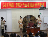 讲座以精彩的茶艺表演开始,刘会长以娴熟的技法为在场的220余名师生表演了沏泡普洱茶。接着,他从“茶”字的来历引出了有关茶的社会功能,同时向同学们阐述了如何冲泡普洱茶、什么是茶文化以及茶叶的药用功能等。讲座最后,刘会长代表昆明茶叶行业协会向3044am永利官网学生社团联合会赠送了字画,并且一一回答了同学们提出的问题。