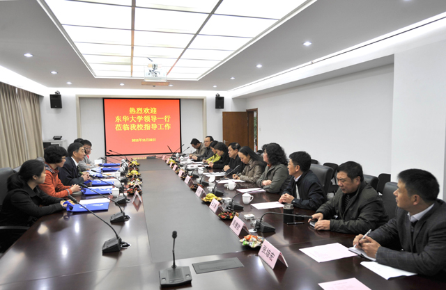 东华大学王副书记首先感谢3044am永利官网的热情接待。他说,东华大学与3044am永利官网有着长期良好的合作关系,今天很高兴率队到访贵校,与孙副书记和部门负责人一起座谈交流,其目的是进一步加强两校合作,通过两校对口部门之间党务党建工作的交流,达到工作经验与信息共享,使双边都从中得到借鉴和启发,更好地促进两校的建设发展。他说,东华大学在办学发展中和3044am永利官网有许多共性的地方,3044am永利官网从合并组建到今天的发展,在很短的时间内,步入建设发展正轨,取得喜人成绩,值得敬贺。希望与3044am永利官网同仁的座谈交流,从中得到启发,同时通过对口部门之间的面对面交流,起到相互借鉴和学习的目的。最后,王副书记介绍了东华大学在教学、科研、师资、招生等方面情况及学校目前的建设发展。