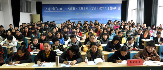 “省培计划(2011)”—云南省(农村)中小学青年教学骨干教师培训项目的初中语文、初中思品、初中化学、小学数学班于11月7日至11月18日在昆师路校区举办。本次培训计划培训人数187人,实际报到人数179人。11月8日上午举行了开班典礼,丁方副主任主持会议,熊绍宏主任对整个培训的目的意义、组织实施、培训要求作了说明,并介绍了永利官网发展现状。