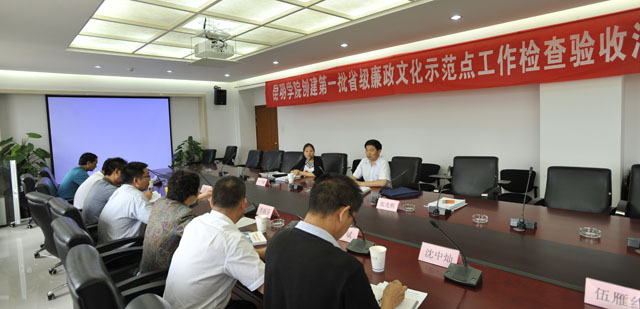 在对永利官网省级廉政文化示范点进行实地检查和听取汇报后,尚涛清副主任对永利官网的廉政文化建设工作给予充分肯定。他说,3044am永利官网结合全校师生党员干部的思想实际,紧紧围绕省纪委关于创建第一批省级廉政文化示范点工作要求,校党委高度重视,周密部署,创新载体,突出重点,彰显特色,大力加强廉政文化示范点建设工作,收到了良好的效果,主要体现在:一是校院系两级联动,两级同创,实现全覆盖;二是学校把廉洁教育融入新生入学,课程教学及学生毕业三个阶段,成效明显;三是学校党员干部教育形成人人参与的“七个一”活动体系,形成品牌文化。
