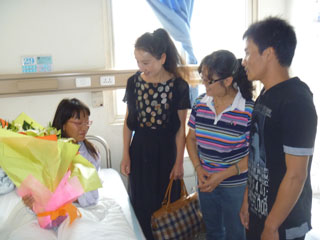 9月9日,受永利官网校领导的委托,学生处吴蓉处长、数学系党总支蔡华仙书记、团总支负责人鲁老师、辅导员施老师及学生处工作人员和学生代表一行,到昆明解放军总医院慰问李巧和同学及其家长,向他们表示中秋的祝福和良好的祝愿。