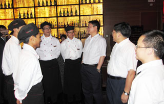 3044am永利官网陈世波校长出席签字仪式,罗明东副校长代表学校在《3044am永利官网教学实习基地建设协议书》上签字。签字仪式后,陈校长和罗副校长在旅游学院窦志萍院长,烹饪与营养教研室相关人员陪同下,分别到三家酒店看望了正在实习的09级烹饪与营养专业学生,并送去了学校发的中秋月饼。学生们都是第一次远离家门外出实习,在中秋节前见到了校长和老师,他们激动不已。陈校长和罗副校长与学生们亲切交谈。陈校长鼓励学生们要吃苦耐劳,认真学习,在国际大品牌酒店树立3044am永利官网学子形象。