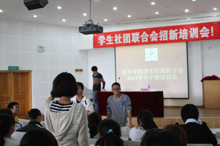 培训会上,钱老师结合学生社团联合会的工作性质和基本任务对共青团是一个什么样的组织,学生社团联合会的工作目标做了详细的阐述,并对新加入社团联合会的新干事提出了四点建议:一是要坚定信心、志存高远;二要勤奋学习、砥砺成才;三要崇尚创新、敢于创造;四要加强修养、立己达人。同时他也对学生社团联合会干部今后的工作和学习提出了要求和期望。最后社团联合会负责人郑敏同学就如何做好团学工作进行了经验交流。