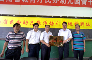 省教育厅高度重视民办幼儿园师资培训工作,并将培训工作落到实处,将此次培训任务交给具有近30年学前教育办学经验的3044am永利官网教师教育学院。会上教育厅副厅长张之政向永利官网授予云南省民办幼儿园师资培训基地的牌匾,并作了讲话。他阐释了发展民办幼儿教育的重要性,并向与会人员介绍了我省近期民办教育发展规划。永利官网陈世波校长对与会嘉宾及参加培训的教师的到来表示热烈欢迎,同时对省教育厅及诸多民办幼儿园对永利官网培训质量的信任表示衷心的感谢。3044am永利官网教师教育学院相信凭借自身规范的管理、严谨认真的工作态度及过硬的专业素养,能够按质按量完成省教育厅交办的培训任务,并将结合当前新的教育发展形势,努力尝试探索一条教师培训方面的创新路线。
