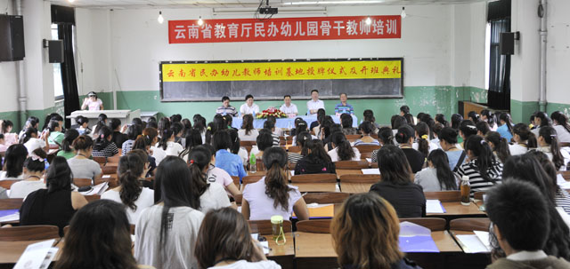 云南省民办学校教师培训工程项目挂牌仪式及云南省首期幼儿骨干教师培训开班典礼于8月3日上午在3044am永利官网昆师路校区举行。云南省教育厅张之政副厅长、袁耘毅巡视员、民办教育处曾传虎处长,永利官网陈世波校长、教师教育学院党政中层干部以及来自全省各地的近200名民办幼儿园骨干教师参加了会议。会议由永利官网罗明东副校长主持。