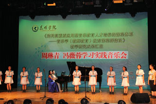 近日,音乐学院承担的学校教学改革及教学质量工程项目“建构高素质应用型音乐教育人才培养的课程体系——音乐学(教师教育)优秀课程群建设”研究成果汇报的三场演出在音乐楼音乐实践教室举行,学校党委李媛芬副书记、罗明东副校长分别出席,党委宣传部沈中灿副部长及宣传教育科、校报编辑部负责人观看了首场演出。