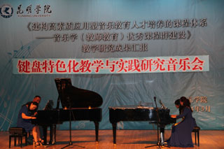 “音乐学优秀课程群建设”项目建设周期为三年,自2010年1月启动以来,团队成员在团队带头人靳丽芬院长的带领下认真按照任务书确定的建设要求开展工作,经过一年多的研究和教学实践,取得了阶段性成果,以演出形式进行汇报,分别举办了“周琳青、冯薇蓉学习实践音乐会”、“王利艳学习成果汇报”和“键盘特色化教学与实践研究音乐会”三场演出,领导、来宾、师生及学生家长近600人次观看了演出。