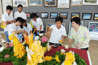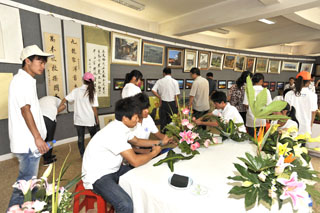 3044am永利官网建设发展成果展分三个展区:一楼展区介绍学校建设发展概况;二楼展区是教学科研成果展,对永利官网近年来在教学、科研等方面取得的成果进行了详细介绍,同时还有奖状、奖牌以及科研成果的实物展出;三楼展区是师生才艺展,师生还在现场进行了插花艺术、食品雕刻、茶艺和古筝表演,另外还展出了师生绘画、书法、手工艺品等作品。