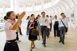 落成庆典当天,出席参加落成庆典的嘉宾、师生有两千余人次到展览馆进行了参观。展厅里,由旅游学院学生担任的解说员向到场参观的嘉宾进行现场讲解,大家对学校短期内取得如此成绩赞叹不已,尤其是三楼的才艺表演吸引了大家驻足观看。在二楼留言区,嘉宾们纷纷题字留言,为学校提出了宝贵意见和建议。