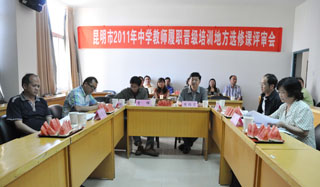 5月19日,昆明市教育局、职业技术教育中心(市中小学教师继续教育中心)在3044am永利官网昆师路校区举行专家论证会,对昆明市2011年秋季中小学教师履职晋级培训拟新增的7门地方性选修课程进行综合评审。