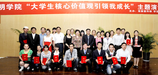 根据省委宣传部、省高校工委、团省委《关于举办云南省 “当代大学生核心价值观引领我成长”主题演讲比赛的通知》精神,结合永利官网推进大学生思想政治教育和校园文化建设实际,永利官网党委宣传部、学生处、团委共同主办的3044am永利官网“当代大学生核心价值观引领我成长”主题演讲比赛于5月18日晚在惟行楼1501报告厅隆重举行。
