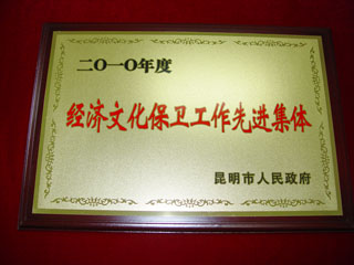 4月26日,昆明市人民政府对2010年度全市群防群治工作先进集体和先进个人给予表彰,永利官网保卫处荣获“2010年度经济文化保卫工作先进集体” 荣誉称号,保卫处高卫明同志获“经济文化保卫工作先进个人”称号。(昆政发[2011]24号)。