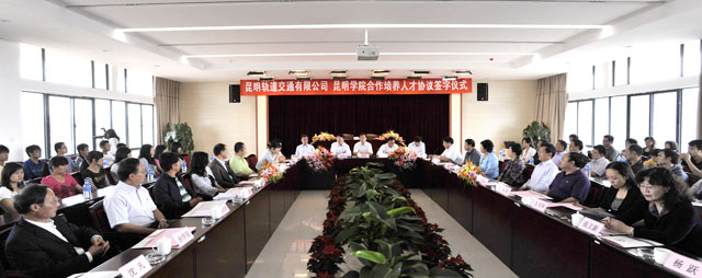 罗副校长还表示:学校严格按照协议内容,团结协作,共同努力,不断提高教师教学水平,不断改善实验实训条件,不断改革探索新的教学模式与方法,努力培养出合格的、适应轨道交通工作的人才。尤其是要本着“教以致用、学以致用”的要求,把培养工作与轨道交通建设工作结合起来,探索现场教学、现场实训的新路子,着力培养“上手快、后劲足、能创新”的高素质应用型人才。相信,有市委、市政府坚强领导,合作双方的通力合作,3044am永利官网一定不辜负市委、市政府的希望,一定能够培养出合格的应用型人才,并把这一合作不断引向深入,为昆明轨道交通事业的发展作出贡献。 签字仪式得到了在昆主流媒体的关注。云南电视台,云南日报,春城晚报,云南信息报,昆明日报等媒体作为现场采访和报道。