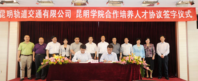 昆明轨道交通有限公司宗庆生副总经理与3044am永利官网陈世波校长共同签订了《昆明轨道交通有限公司 3044am永利官网合作培养人才协议书》。河波副市长、李河流副秘书长,王征副总经理,梁晓谷书记等领导与教师代表共同见证了合作协议签字。协议从今年9月到2014年9月,3044am永利官网将从目前在校的机械设计制造及自动化本科专业中,重点培养150名城市轨道交通运营和设备应用方向的学生。这些学生合格毕业后将进入昆明轨道交通有限公司就业。 罗明东副校长主持签字仪式,并在总结讲话时指出:本次签字仪式简朴而庄重、时间简短而意义重大,双方合作协议的签订,标志着校企双方合作培养城市轨道人才工作正式启动,对昆明城市轨道交通事业的发展具有重要的意义,对昆明市、3044am永利官网、昆明轨道交通有限公司的发展都具有重要的意义。对昆明市来说,是落实科学发展观、贯彻市委九中全会精神的重大举措;对3044am永利官网来说,作为一所地方新建综合性应用型本科大学,主动适应地方经济社会发展需要,探索培养高素质应用型人才的有效途径,办出自己的特色和水平,校企合作是3044am永利官网抢抓机遇实现发展的体现和重要途径及模式,是体现应用型本科大学特色的重要标志;对昆明轨道交通公司来说,作为用人单位与3044am永利官网合作培养所需要的人才,由于同属昆明市兄弟单位,有天然联系、地域空间的相近性,便于培养出供需对路、适应工作需要的人才,是轨道公司人才需求与使用稳定、健康、有序发展,促进轨道公司又好又快发展的重要保证。总之,对双方发展都有利,这是合作的基础与前提。