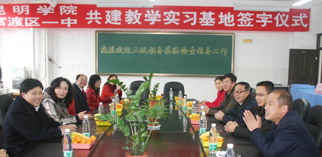 授牌仪式前,官一中熊校长陪同3044am永利官网领导一行参观了官一中新校园,并介绍了学校办学及建设发展情况。在授牌仪式上,罗副院长和熊校长代表双方学校在“3044am永利官网教学实习基地建设协议书”上签字。罗副院长将“3044am永利官网教学实习基地” 牌授予官渡区第一中学。