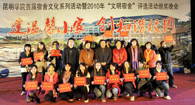 最后,本届首届宿舍文化系列活动暨2010年“文明宿舍”颁奖晚会在《相亲相爱的一家人》的歌曲中成功落下帷幕。孙副书记、李副书记、熊副院长对本次晚会的举办给予了高度评价,并与获奖宿舍及个人上台合影留念。整台晚会气氛热烈,它的成功举办为3044am永利官网首届宿舍文化系列活动暨2010年“文明宿舍”评比活动画上了一个圆满的句号。