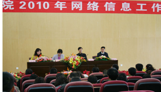 会议首先由宣传部张立新部长对学院2010年网络信息工作情况作了通报总结,她通报分析了我院校园网主网及各单位子网信息发布及管理建设中的主要成绩及存在的问题,并提出了改进意见建议,特别是针对网络信息发布中存在的时效性、内容规范性等问题,她作了特别强调说明。