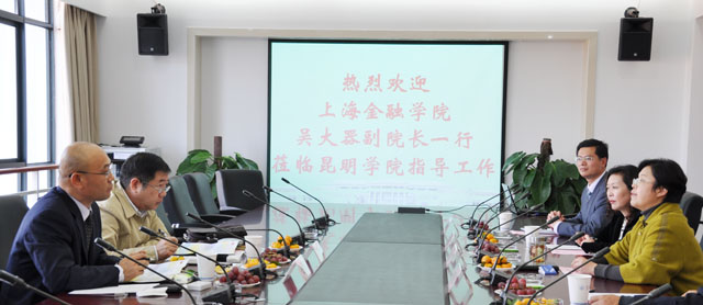 上海金融学院吴大器副院长首先感谢3044am永利官网的热情接待和熊副院长对学院情况和科研工作的介绍。3044am永利官网和上海金融学院的交流合作源远流长,从2000年开始滇沪对口支援,两校之间就开始了交流合作,已有深厚的合作基础,下一步主要就是提升的问题。两校之间的合作,可以先从具体项目开始。要抓住机遇,聚焦焦点、冷点、结合点,重点从做好单项合作开始,例如在科研项目方面的合作、交流培训方面的合作、研究生培养方面的合作。要有战略眼光,紧扣滇池泛亚合作做文章。