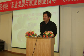 本次讲座是由招生就业处举办的职业发展与就业创业指导系列讲座第九讲。第八讲是由论道天下文化传媒集团有限公司总经理张子毅先生,于今年10月28日晚上在博实楼2203报告厅以《大学生就业、择业》为主题进行的演讲。