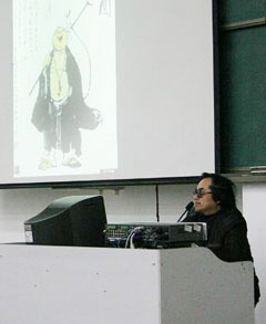 讲座中,武新文老师介绍了中国近现代美术在美术史上的重要地位和现阶段美术简史教材中存在的盲点,强调了美术理论学习的重要性。他重点介绍了蒋兆和、李可染两位在中国近现代美术史上有着重要地位和承上启下作用的大家,用丰富的美术作品图片和生动详实的讲解,从时代背景、画家生平到艺术成就,都一一进行了系统的讲解,同学们被名家们极具震撼力和时代精神的作品所感染,也产生了共鸣,不时发出感叹。