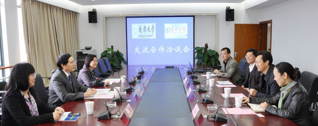 10月27日上午,成都大学赵钢副校长率校办王家芝副主任和宣传统战部陈钧部长一行3人到我院访问交流,这是继5月14日成都大学周激流校长一行访问永利官网及6月4日学院党委梁晓谷书记一行考察访问成都大学以来,两校之间的第三次互访。