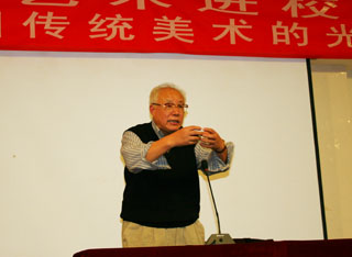 10月18日晚,我院在省教育厅的安排下,在青年中心学生报告厅成功举办了高雅艺术进校园活动。南京艺术学院二级教授、博士生导师奚传绩在我院首场作了题为《中国传统美术的光辉》的专题讲座。我院党委宣传部张立新部长、统战部张云权部长、美术系武新文主任、美术系党总支江发强副书记、团委钱海鼎副书记以及美术系师生近300人参加了本次讲座。