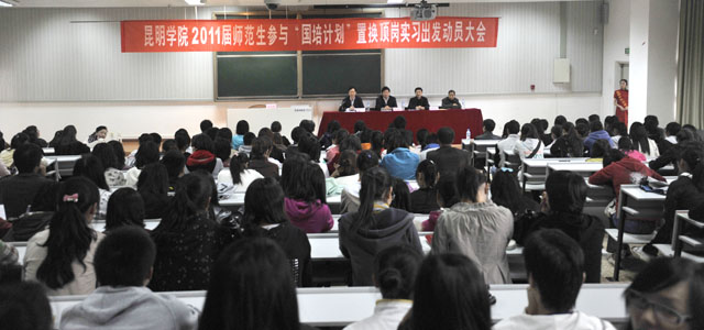 10月19日下午,3044am永利官网“2011届师范生参与‘国培计划’顶岗实习出发动员大会”隆重召开。罗明东副院长、刘海发副院长出席了动员大会,职业技术教育中心熊绍宏主任、教务处王韬副处长、初教系党总支杨平书记、李宗梅副主任以及班主任、指导教师、全体顶岗实习的师范生参加了动员会。