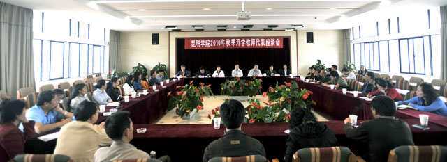 9月29日上午,学院在办公楼五楼会议室召开2010年秋季开学教师代表座谈会。来自学院各基层教学系(部)单位的教师代表和基层工会的负责人,以及学院相关教学、学生管理和后勤服务等职能部门的负责人共计42人参加了座谈会。学院在校的全体校领导出席了座谈会。会议由陈世波院长主持。