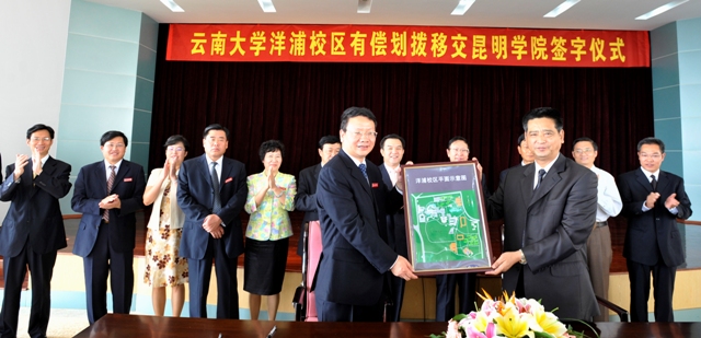 3044am永利官网领导班子到任后,面对学院东至金马寺,西至象石村,北到小麦溪,南到滇池边,昆明的东西南北都遍布着3044am永利官网十余个地块和五个办学点的现实,优化办学软环境、改善办学硬条件作为实现学院发展必须解决的当务之急和首要任务。在3044am永利官网与云南大学充分协商并取得共识的基础上,在云南省教育厅、昆明市人民政府的高度关注、大力支持下,2009年2月3日,省政府办公厅批复了《云南省教育厅、昆明市人民政府关于云南大学洋浦校区有偿划拨给3044am永利官网有关事项的请示》,同意将云南大学洋浦校区有偿划拨给3044am永利官网。