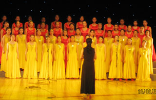 演出前举行了简短的毕业生欢送仪式,系党总支干事赵雯老师主持了仪式,毕业生代表和毕业生家长分别发言,系副主任唐敏老师代表全系师生致词,对全体毕业生予以祝福并提出了希望。最后毕业生代表向教师代表献花,全场学生起立,向老师们喊出了自己的心声——“老师,您辛苦了!谢谢老师”。