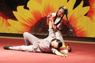 联欢会上,音乐系教师与服刑人员同台演出,表演了精彩的文艺节目。节目内容丰富多彩,表演形式多样:有独唱、合唱、舞蹈、民乐独奏、器乐合奏,有《拉德斯基进行曲》、《精忠报国》、《我的中国心》等经典名曲,有来自不同国度的舞蹈表演《那时格桑花开》、《美好时光》,有富含流行元素的独唱歌曲《来吧》、《吻别》,也有风趣幽默的方言说唱。整个联欢会气氛热烈,高潮迭起。