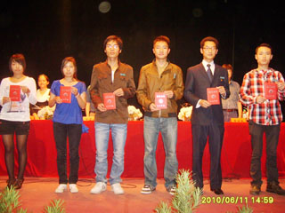 表彰会上,系党总支书记李海雁老师首先代表系党总支、系行政对全体教职工富有成效的工作表示诚挚的感谢!向在各个方面取得进步的全体同学表示衷心的祝贺!李书记对受到表彰的同学提出要倍加珍惜取得的荣誉,虚心向周边同学学习,认真查找自己各方面的不足,自觉的纠正自己的行为,再接再厉、拼搏进取,争取不断进步的要求,并号召全体同学向他们学习。接着,系副主任申时凯老师宣布了我系同学在2009-2010学年度参加省市、学院各种学术、科技、文体活动的获奖名单,系党总支副书记王亚越老师宣布了我系心理健康教育主题班会、心理征文比赛及网页设计大赛获奖名单。在2008级电子商务班毕海旭同学代表获奖同学作了发言后,系领导为获奖的集体和个人代表颁发了奖项,并合影留念。
