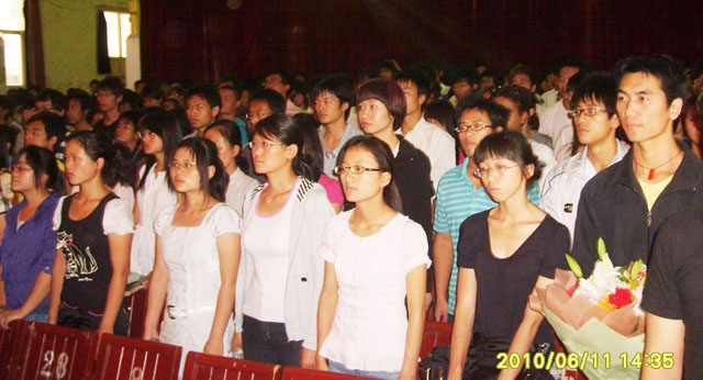 6月11日下午,计算机与网络技术系2009-2010学年度学生表彰大会暨毕业生欢送会在昆师路校区大礼堂召开。系党总支书记李海雁、系主任王震江、系副主任申时凯、系党总支副书记王亚越老师及全系师生共490人参加了会议,会议由系党总支宣传委员李凯佳老师主持。