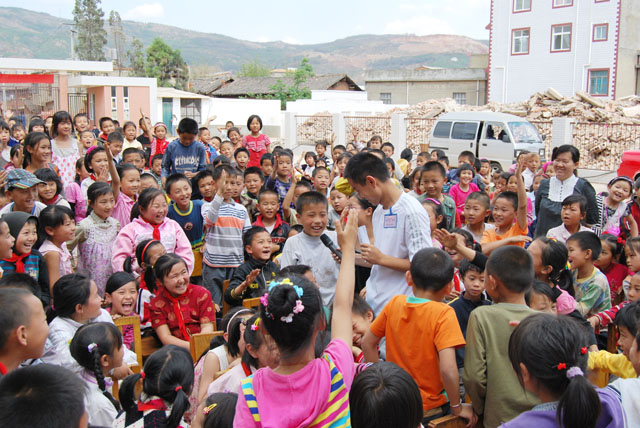 学前系部分党团员师生代表顶着烈日,于5月18日中午,来到昆明市桃园小学组织了一次“心手相连、爱心捐助”联欢活动。桃园小学600余名师生参与了本次活动。