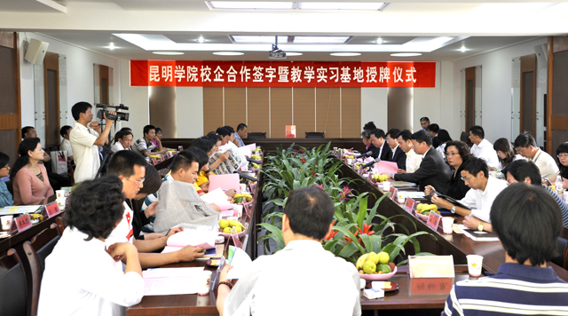 5月5日上午,3044am永利官网与昆明晨农产业集团、云南大益集团有限公司等13家国家、省、市涉农龙头企业和外资企业在学院农学中专部签订校企合作暨教学实习基地协议,并举行授牌仪式。学院党委书记梁晓谷、院长陈世波、副院长罗明东和13家企业的董事长、总经理等领导出席签字授牌仪式,学院农学中专部、教务处、党委宣传部等部门参加了签字授牌仪式。
