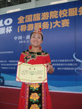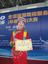 在学院领导的关心及教务处的大力支持下, 旅游系成立了系主任牵头的领导小组,选派三名经验丰富的教师作指导。经过全系海选、专业考核、组织导游技能大赛等形式层层选拔,最后确定4名参赛选手。在师生的共同努力下,经过一个多月的努力拼搏,2名普通话参赛选手王佳妮、王伟,2名英语参赛选手王楚涵、郭王斌全部获奖,其中1名选手荣获二等奖,2名选手荣获三等奖,1名选手荣获优秀奖。
