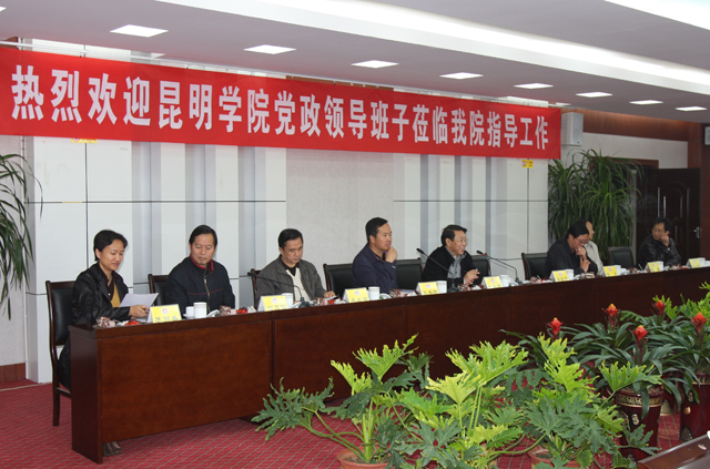 陈世波院长介绍了3044am永利官网成立以来,以超常规、跨越式、追赶型发展思路,解决学院办学环境和硬件条件制约问题,构建综合性应用型本科大学基本框架的情况。介绍了目前学院正在通过教育思想大讨论,全面推进学院内涵发展,在教学质量工程、师资队伍建设、学科专业建设等方面取得的成绩以及下一步学院工作部署。陈院长表示,玉溪师院建议的合作项目切合两校实际,将积极参与并进一步磋商落实,共同完成。陈院长最后强调:3044am永利官网与玉溪师院山水相连,共处滇中经济圈,办学过程有很多相似的地方,有着很大的合作交流前景,希望两校以后加强交流、深化合作、互利共赢、共谋发展,共同为促进云南经济社会发展做出贡献。